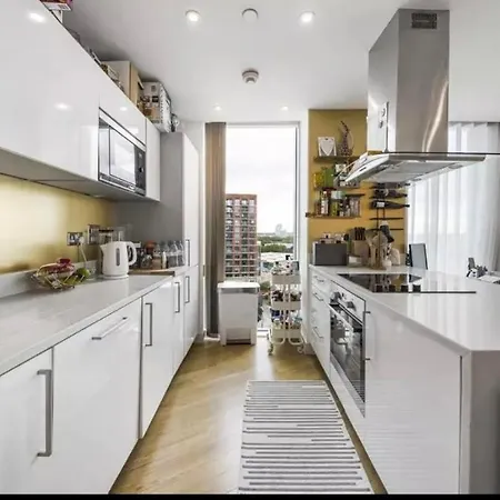 Cozinha equipada tem forno e fogão para preparar refeições. Os hóspedes podem chegar ao apartamento de carro do aeroporto de Fortaleza em 25 minutos.